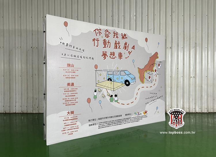 ※畫面建議︰一般帆布(寬318/500cm)、高解析帆布(寬318/500cm)、高遮光阻光帆布(寬318/500cm)、台製大型布旗布(寬318cm)捲收。