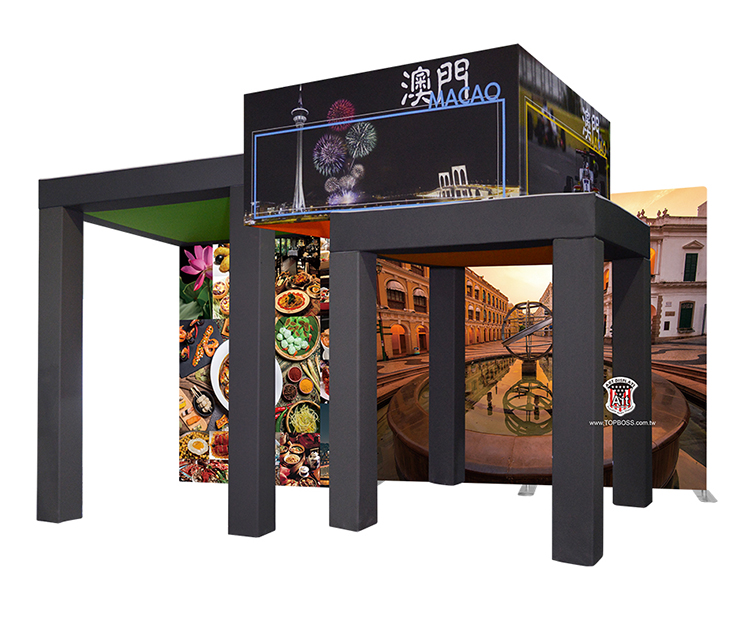 輕量且完全客製化的結構設計,高科技阻燃布,數位微噴設備(韓國D.gen)寬300公分無接縫,全國最大輸出尺寸,重複使用能取代木工裝潢的時間,節省拆除後的資源浪費,更能取代傳統制式鋁架拼接組合呆板的樣式!