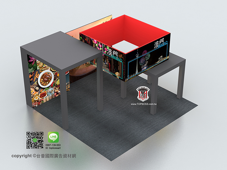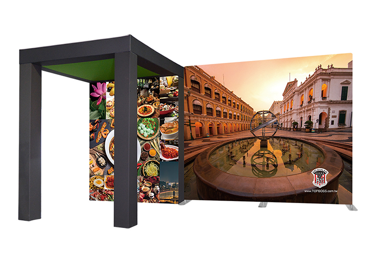 輕量且完全客製化的結構設計,高科技阻燃布,數位微噴設備(韓國D.gen)寬300公分無接縫,全國最大輸出尺寸,重複使用能取代木工裝潢的時間,節省拆除後的資源浪費,更能取代傳統制式鋁架拼接組合呆板的樣式!