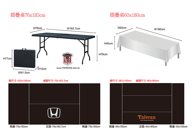 裝飾用桌布尺寸: 60x180cm or 90x180cm (60/90cm面寬尺寸)