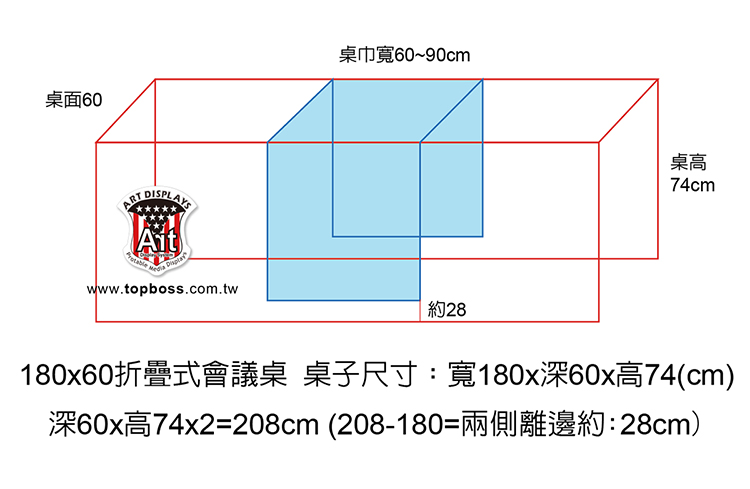 裝飾用桌布尺寸: 60x180cm or 90x180cm (60/90cm面寬尺寸)