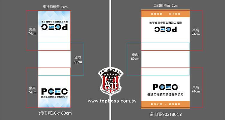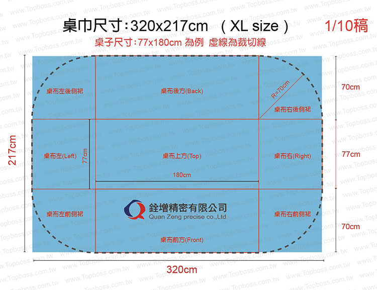 全罩式桌巾展開尺寸,兩種規格有後全罩及罩15公分