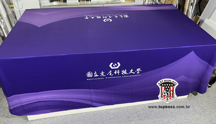 裝飾用桌布: 一般為長條型,鋪在桌面的長面或寬面,二邊下墜依喜好30-40公分或觸地。全彩桌飾布可以搭配素面款桌巾一起訂購。
