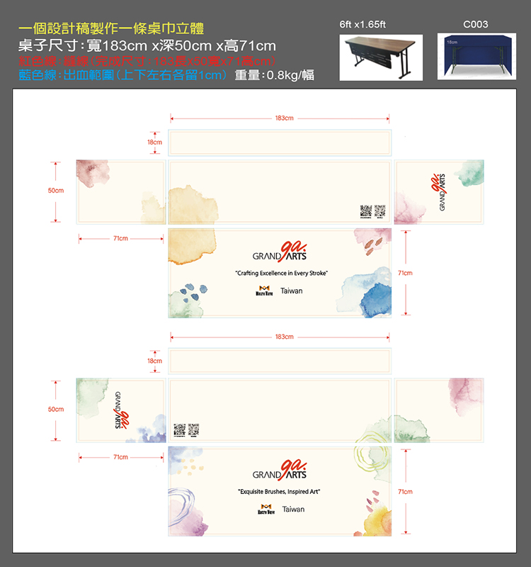 少量即可印刷,請參考模版及商標位置(也可以量桌訂作)