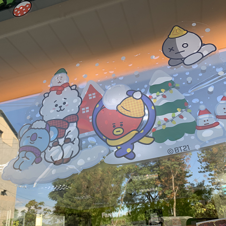 一般用於玻璃表面,輸出完後可在表面上亮膜或霧膜,讓顏色具有保護效果,但靜電貼一般尺寸建議不能超過A1大小,目前輸出方式有分全彩輸出(無白墨)及彩白彩輸出,所謂彩白彩輸出即為在全彩處先印刷白墨再上色,可增加色彩(四色)的鮮豔度與飽和度。