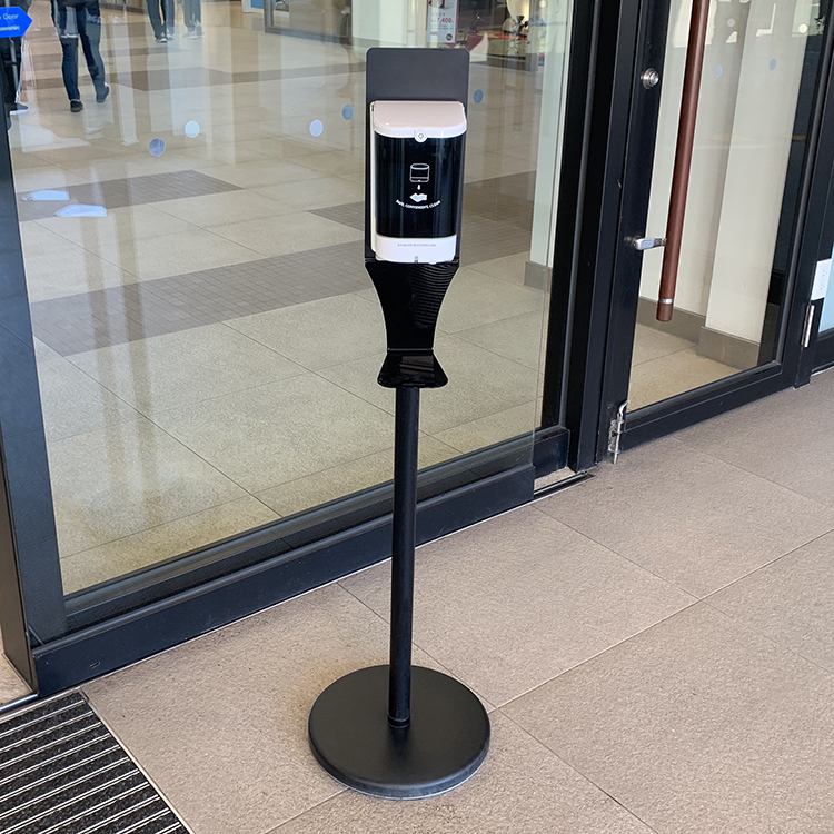 - 搭配給皂機架,可讓(消毒性)給皂機被放置於公共空間任意位置,無論是空間正中央或角落。