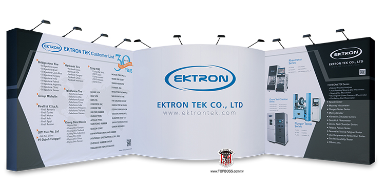 畫面升級彈性布後,免工具即可組裝,圖面完全無接縫,且取代之前膠板的沉重及磁吸的問題,彈性布印刷後的色彩層次解析度也達到一定的水準,不反光布皺褶是彈性布的特質,組裝上更為容易,展架上下四邊裝上直桿魔鬼沾黏扣(公),彈性布畫面四邊魔鬼沾黏扣(母),畫面安裝非常容易上手,畫面最寬300cm長度則無限 ,超過易可拚接~