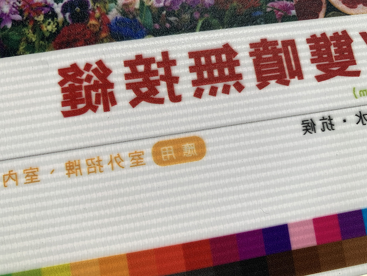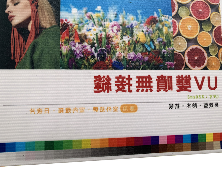 產品特性:六色UV輸出機色彩亮麗豐富、適合室外招牌,樣品屋室內燈箱、日夜片使用、建築空拍燈箱。