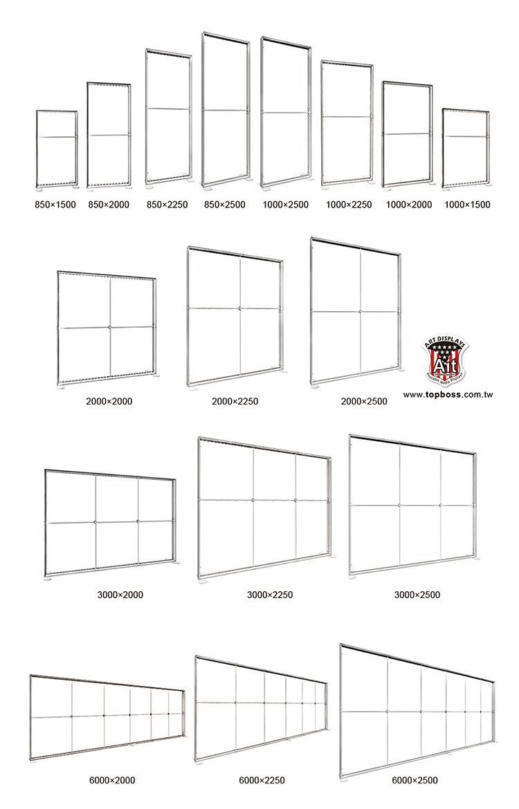 4、 拉布燈箱採用優良鋁合金材質,規格有 4/ 6/ 8/ 10/ 12cm厚度,單面燈箱或者雙面燈箱設計,用角碼進行拼接,組裝上非常簡單快速。