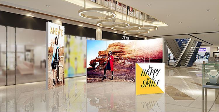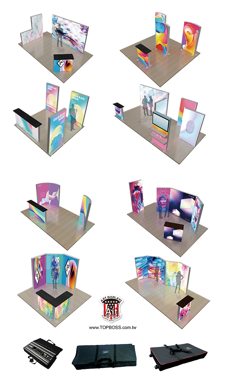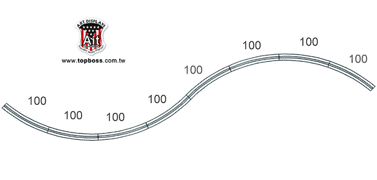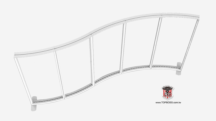作為獨立式的弧形燈箱體,在PVC型材的直接成型上也做了很多研究。正是這個嘗試,給我們在組合造型的設計上提供了很多設計靈感,因此;C型、S型燈箱大屏背景牆組合也得以實現,也成為這個燈箱系統的又一大設計和專利亮點,燈箱系統的產品系列還在不斷增加和升級中,屆時,將成為一套更系統,更完善的模組展臺系統產品。