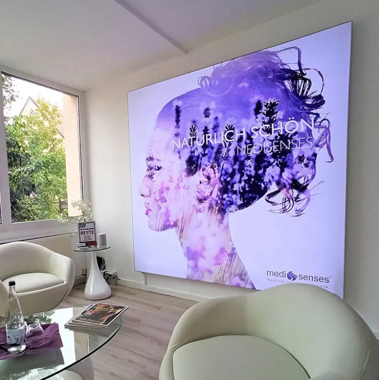 當卡布燈箱的常規尺寸不能滿足廣告畫面尺寸較大的要求時,可以將多塊卡布燈箱拼接為一體展現。卡布燈箱的廣告畫面色彩光澤勻稱、賦有立體感,同時具有較強的防曬防水性,採用LED漫反射捲簾式燈條做為卡布燈箱光源,光源亮度勻稱無陰影,色彩鮮艷飽和度高,畫面展示效果逼真。目前我司可大幅印製3米寬及5米寬無接縫的材質,在器材上也設計了組合式的框架結構,在物流運輸上方便許多,減少早期燈箱需要專車運送的問題,但是組裝上難免有些要技巧性及安全性的問題,建議還是需要專業人士現場組裝。