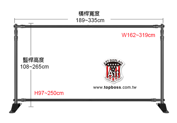 伸縮尺寸: (W)189~335 x (H)108~265cm (器材尺寸)
