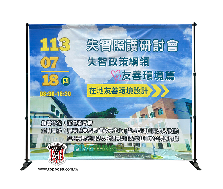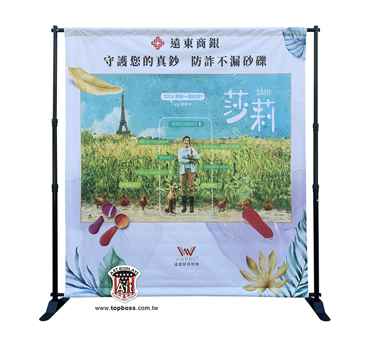 產品特性:伸縮調整大型海報廣告看板,展易萬能架可重覆換海報使用,高度寬度皆可自行調整配合輸出尺寸,是大型海報的宣傳好幫手。