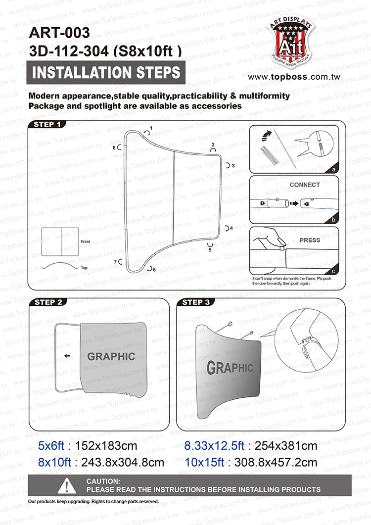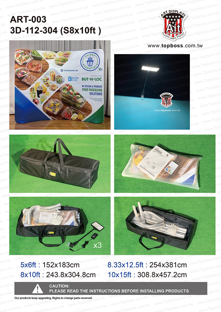 輕量且完全客製化的結構設計,高科技阻燃布,數位微噴設備(韓國D.gen)寬300公分無接縫,全國最大輸出尺寸,重複使用能取代木工裝潢的時間,節省拆除後的資源浪費,更能取代傳統制式鋁架拼接組合呆板的樣式!