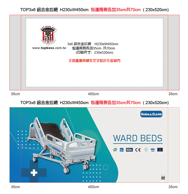 包邊尺寸 兩側各加35cm 共加 70cm (摺邊處為35cm 設計時請標示)