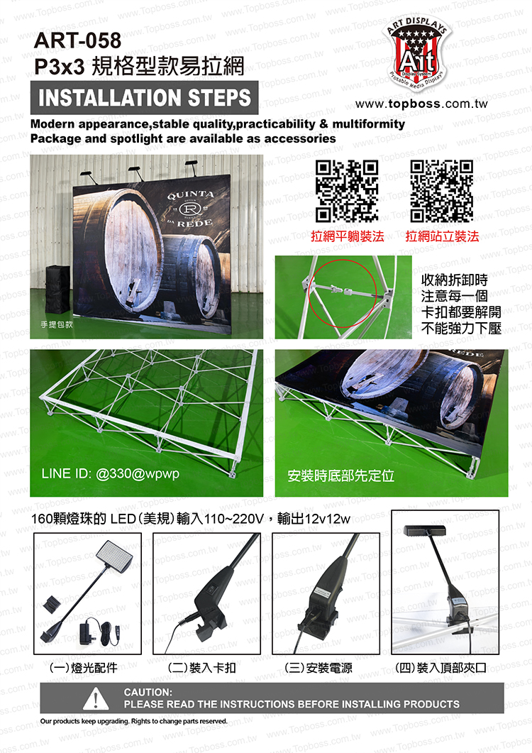 產品特性: 2023年最Hot的展示器材.操作簡單使用方便.重量最輕一體成型.畫面可更換.只要一分鐘.效果立即呈現.適用展覽會場.展覽廣告.巡迴展示.商業促銷.