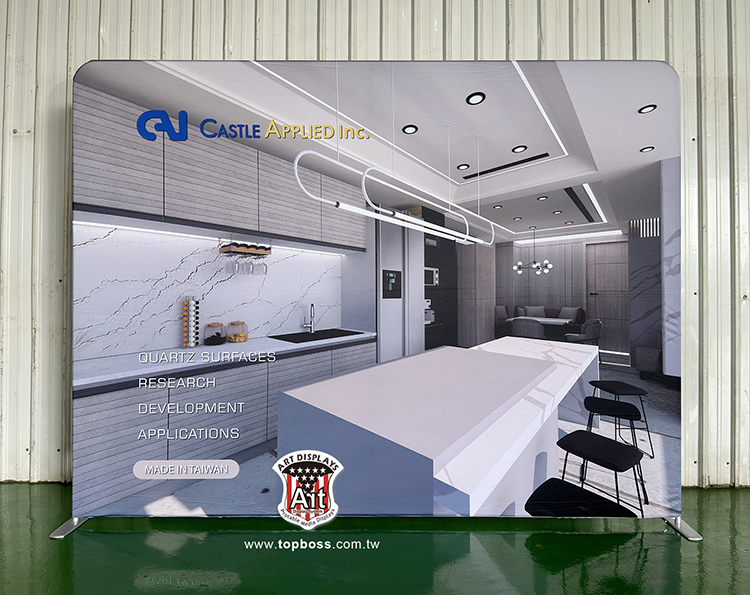 兩個人30分鐘即可輕鬆搭建完成,取代木工耗時搭建及呆版傳統的制式攤位,取代帆布搭起後的縐褶與反光效果,非常適展覽會場、記者會背景牆、大型活動背景牆、任何室內活動場地背景、百貨商場和飯店廣告牆、品牌行銷、產品廣告..........等,無加工時最寬320cm無接縫,長度可達1200cm (12米)以上。