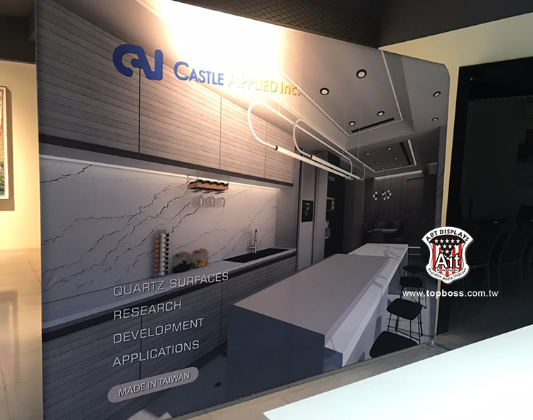 輕量且完全客製化的結構設計,高科技阻燃布,數位微噴設備(韓國D.gen)寬300公分無接縫,全國最大輸出尺寸,重複使用能取代木工裝潢的時間,節省拆除後的資源浪費,更能取代傳統制式鋁架拼接組合呆板的樣式!