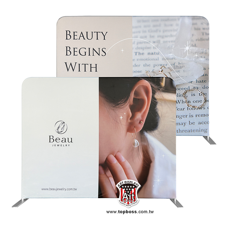 輕量且完全客製化的結構設計,高科技阻燃布,數位微噴設備(韓國D.gen)寬300公分無接縫,全國最大輸出尺寸,重複使用能取代木工裝潢的時間,節省拆除後的資源浪費,更能取代傳統制式鋁架拼接組合呆板的樣式!