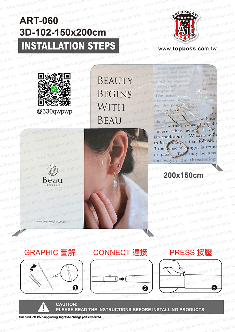 兩個人30分鐘即可輕鬆搭建完成,取代木工耗時搭建及呆版傳統的制式攤位,取代帆布搭起後的縐褶與反光效果,非常適展覽會場、記者會背景牆、大型活動背景牆、任何室內活動場地背景、百貨商場和飯店廣告牆、品牌行銷、產品廣告..........等,無加工時最寬320cm無接縫,長度可達1200cm (12米)以上。