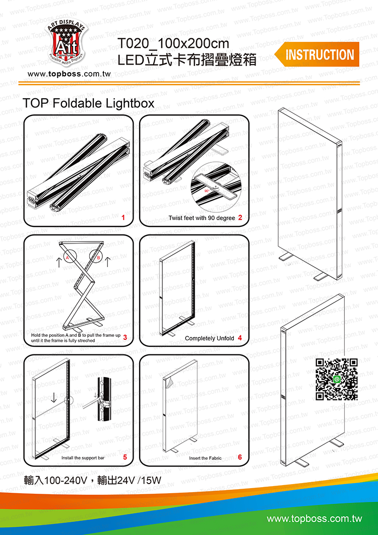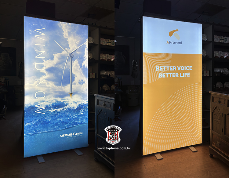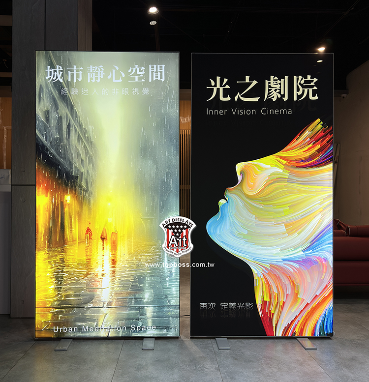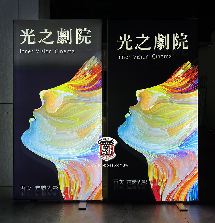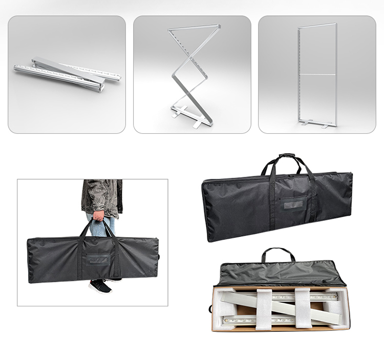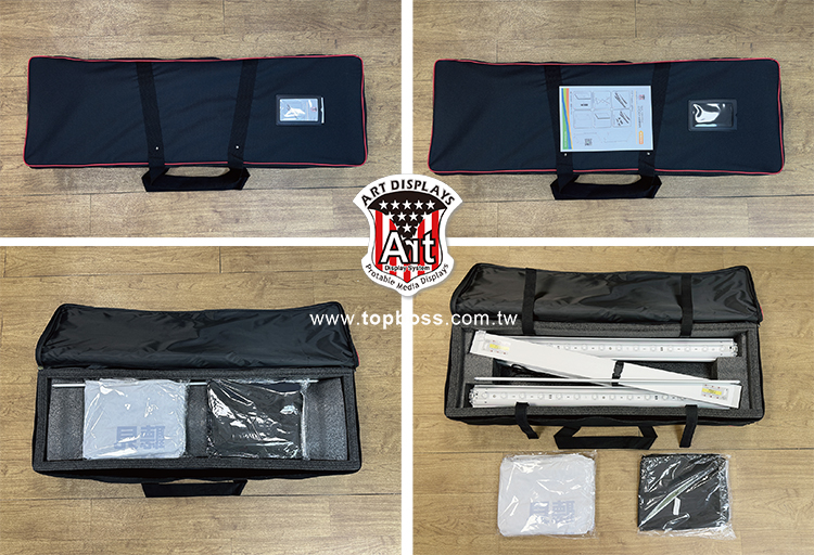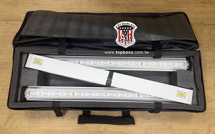 ※ 產品設計為携帶組合式燈箱,收納運送尺寸長度為140cm,鋁材重量約為22kg,一般轎車即可運送,前置畫面為背打光無接縫阻燃燈布,後置為黑白遮光布易於攜帶,畫面摺疊展開後平整無摺痕,LED打光後讓您的廣告畫面光彩奪目~