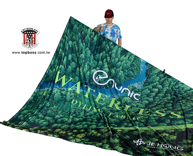 輸出材質:大寬幅320cm無接縫熱昇華彩色斜紋布,不反光適合拍照背景及大型造勢晚會~