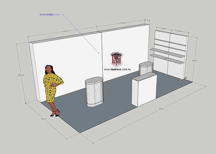 ( 另可選組合燈箱型櫃台 1x1 , 1x2 , 1x3 拼接方式 )
