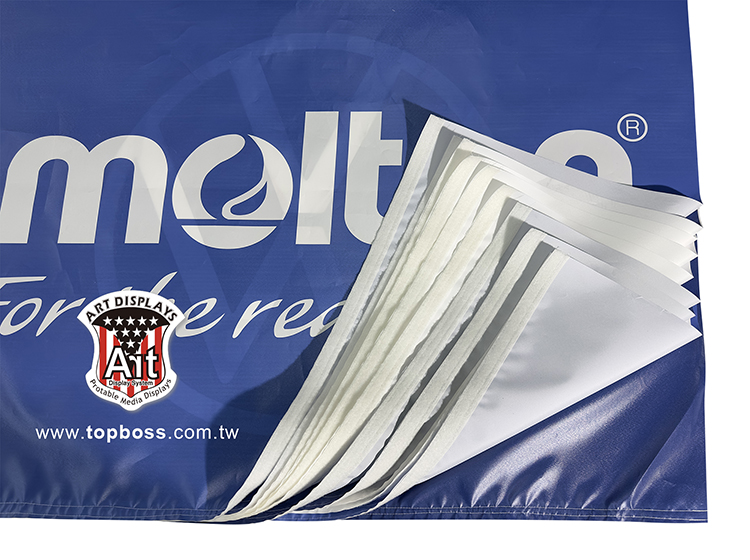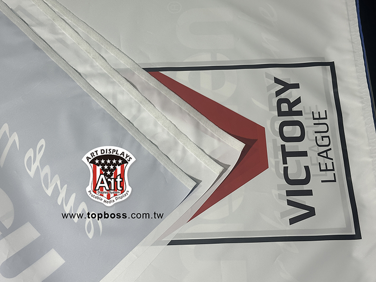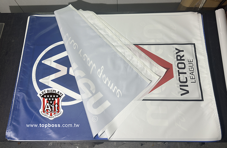 產品特性:輪出後只呈現單面圖文效果,適用展覽佈置,店面橫式、直式全彩布條,搭配各式掛軸或配合旗竿、旗座配件、或後加工。