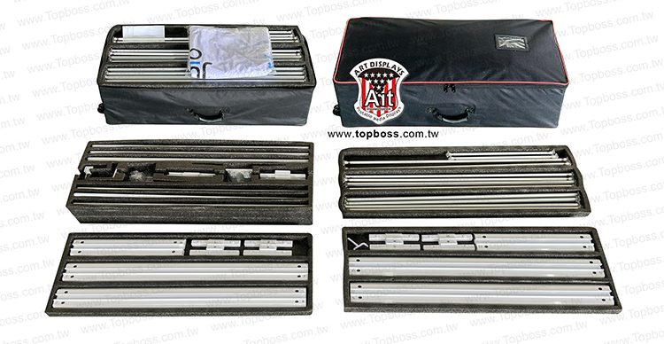 產品設計為携帶組合式燈箱,收納運送尺寸符合一般轎車即可運送,前置畫面為背打光無接縫阻燃燈布,後置為黑白遮光布易於攜帶,畫面摺疊展開後平整無摺痕,LED打光後讓您的廣告畫面光彩奪目~