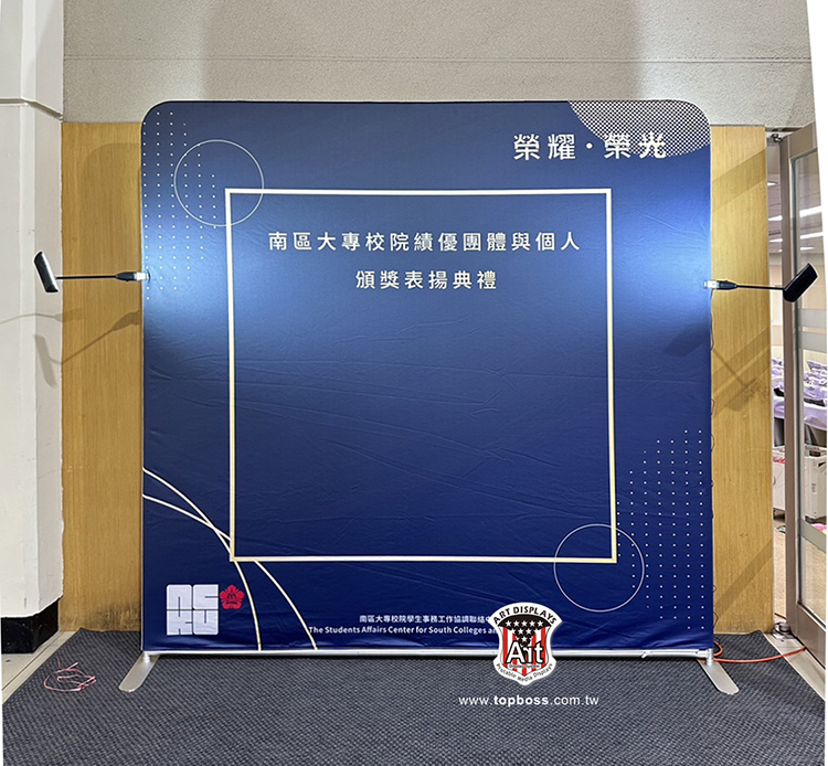輕量且完全客製化的結構設計,高科技阻燃布,數位微噴設備(韓國D.gen)寬300公分無接縫,全國最大輸出尺寸,重複使用能取代木工裝潢的時間,節省拆除後的資源浪費,更能取代傳統制式鋁架拼接組合呆板的樣式!