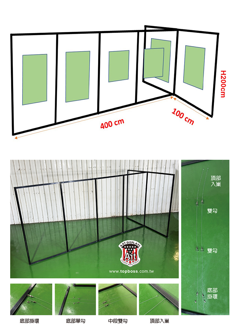 W100xH200cm 3600元 (包裝尺寸: 20x15x205cm 重量: 30kg / 四組)