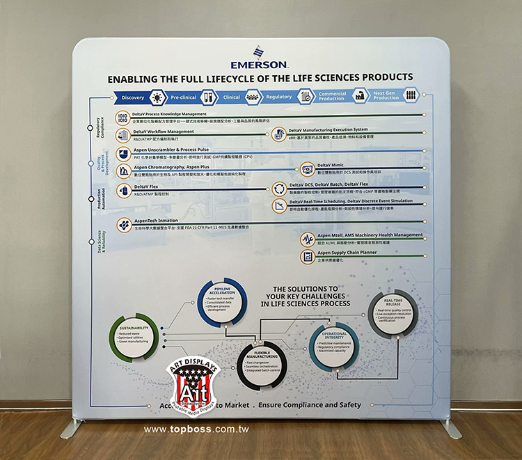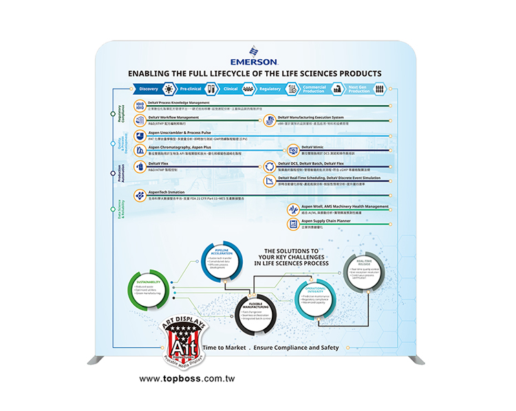 輕量且完全客製化的結構設計,高科技阻燃布,數位微噴設備(韓國D.gen)寬300公分無接縫,全國最大輸出尺寸,重複使用能取代木工裝潢的時間,節省拆除後的資源浪費,更能取代傳統制式鋁架拼接組合呆板的樣式!