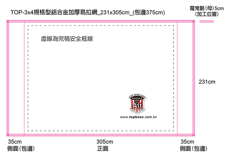 TOP3x4_W230xH305cm x(D30cm) 9.5kg (不含畫面)