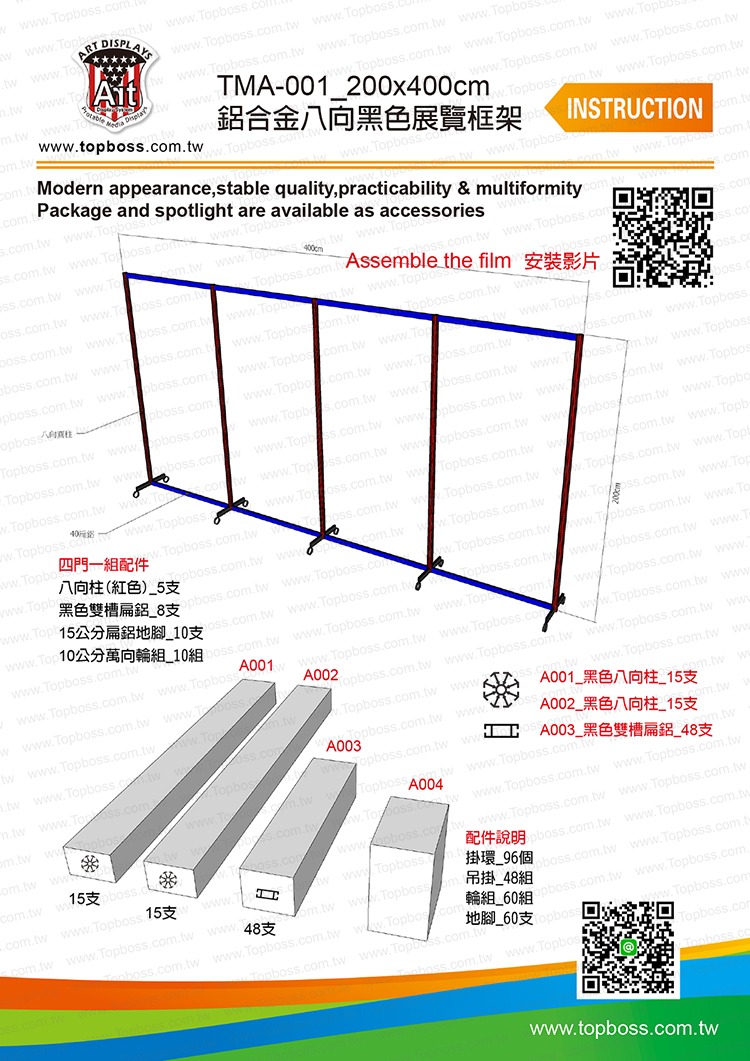 W100xH200cm 3600元 (包裝尺寸: 20x15x205cm 重量: 30kg / 四組)