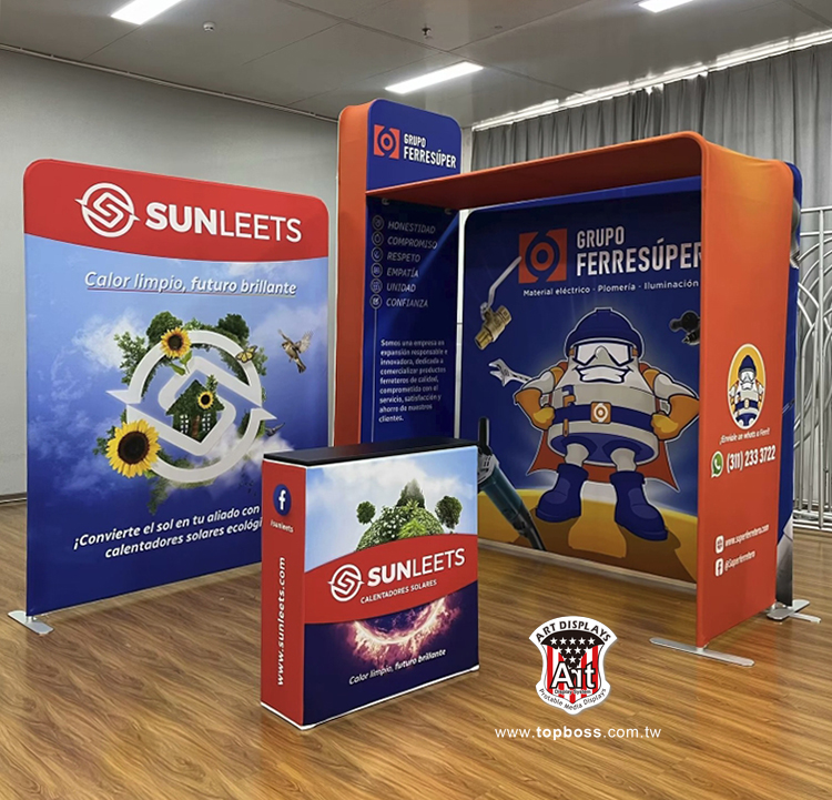 輕量且完全客製化的結構設計,高科技阻燃布,數位微噴設備(韓國D.gen)寬300公分無接縫,全國最大輸出尺寸,重複使用能取代木工裝潢的時間,節省拆除後的資源浪費,更能取代傳統制式鋁架拼接組合呆板的樣式!