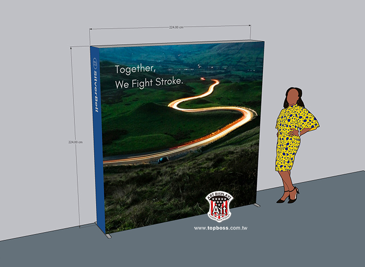 最新技術的拉網式卡布展屏 ,輕便的讓您難以置信集束成捆的網架 ,幾分鐘內彈起成一個大框架 ,既靈活又整潔,300cm高寬無接縫輸出 ,配合專用投射燈 ,令您的展品陳列光彩奪目 ,安裝簡易、無須任何工具;架身輕巧、易於攜帶;亦可自由組合及重覆使用,(若需現場安裝費用另計)。