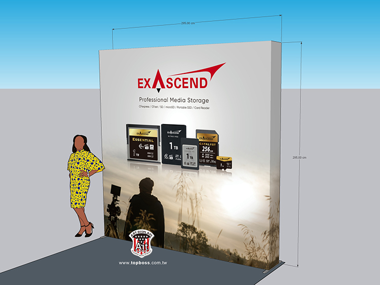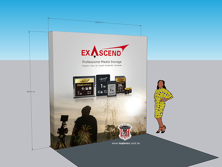 2023畫面升級後的重量僅剩十分之一 免工具即可組裝,畫面300cm高寬,完全可無接縫,不反光不皺褶是彈性布的產品特性,品牌展示牆兼具拍攝用背景超適合~