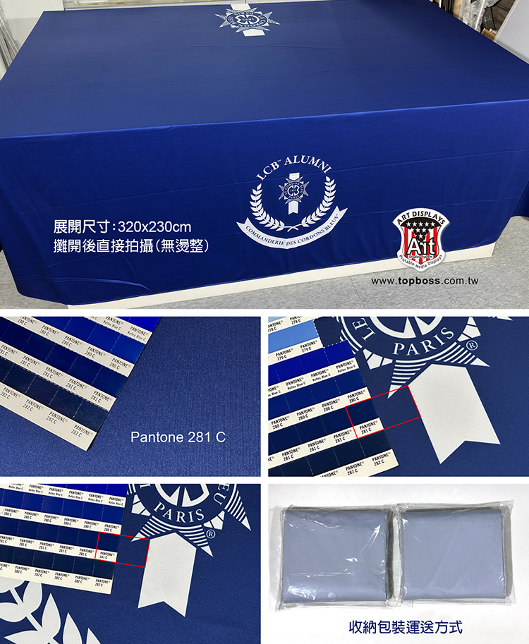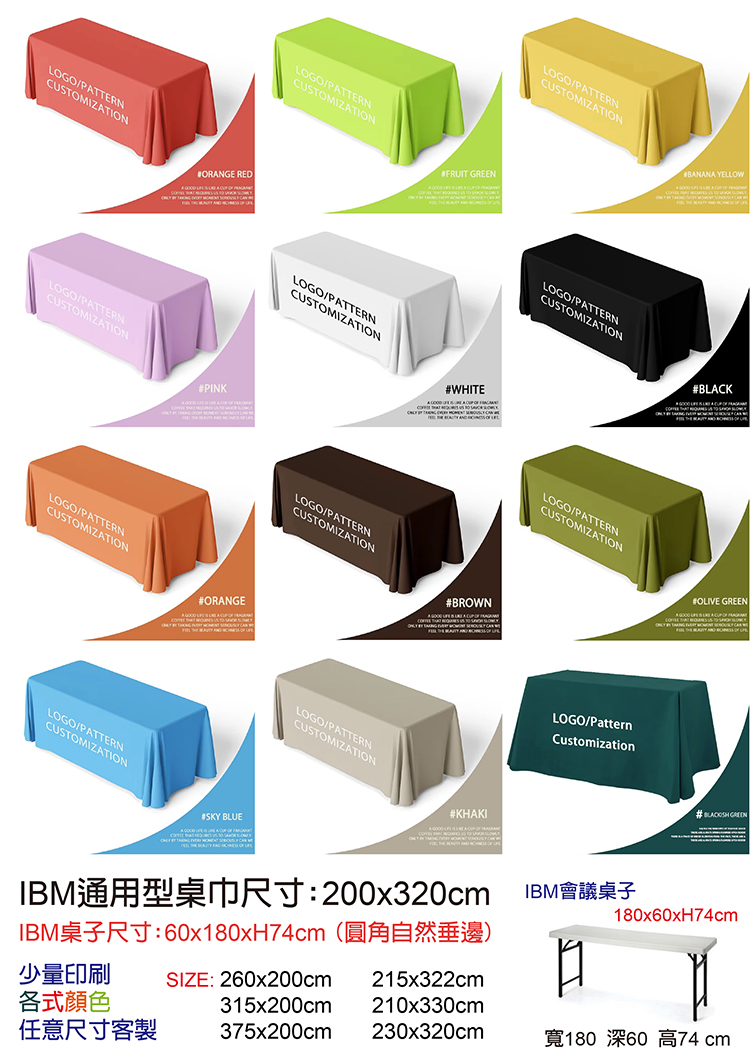 IBM通用型桌巾展開尺寸: 200x320cm (桌子尺寸: W60xL180xH74cm)