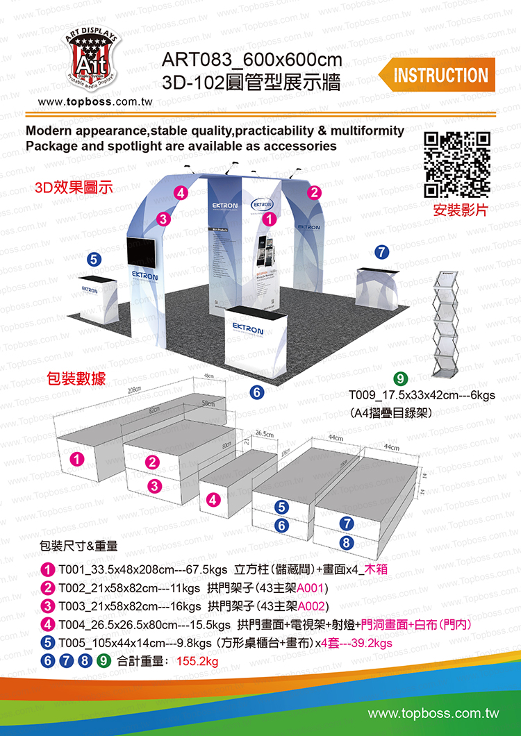 T005_105x44x14cm---9.8kgs (方形桌櫃台+畫布)x4套---39.2kgs ( T005,6,7,8 )